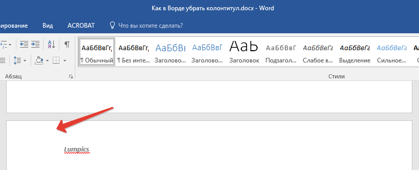 - На ней находят колонтитул и дважды кликают по нему левой кнопкой мыши (ЛКМ).
