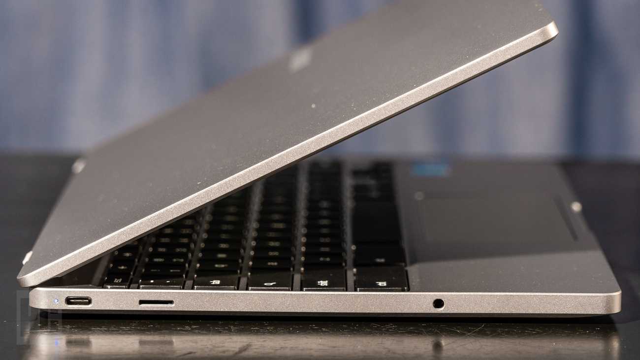 Нагрузка на порты минимальна: один порт USB-C, аудиоразъем и слот для карты microSD на левом краю и один порт USB 3.0 Type-A (плюс слот для замка безопасности) справа. Прилагаемый адаптер переменного тока подключается к порту USB-C, что означает, что вы не можете одновременно подключать вилку питания и внешний монитор (через адаптер DisplayPort). Bluetooth 4.0 и Wi-Fi 5 (более старый стандарт 802.11ac, а не 802.11ax Wi-Fi 6) обеспечивают беспроводную связь.