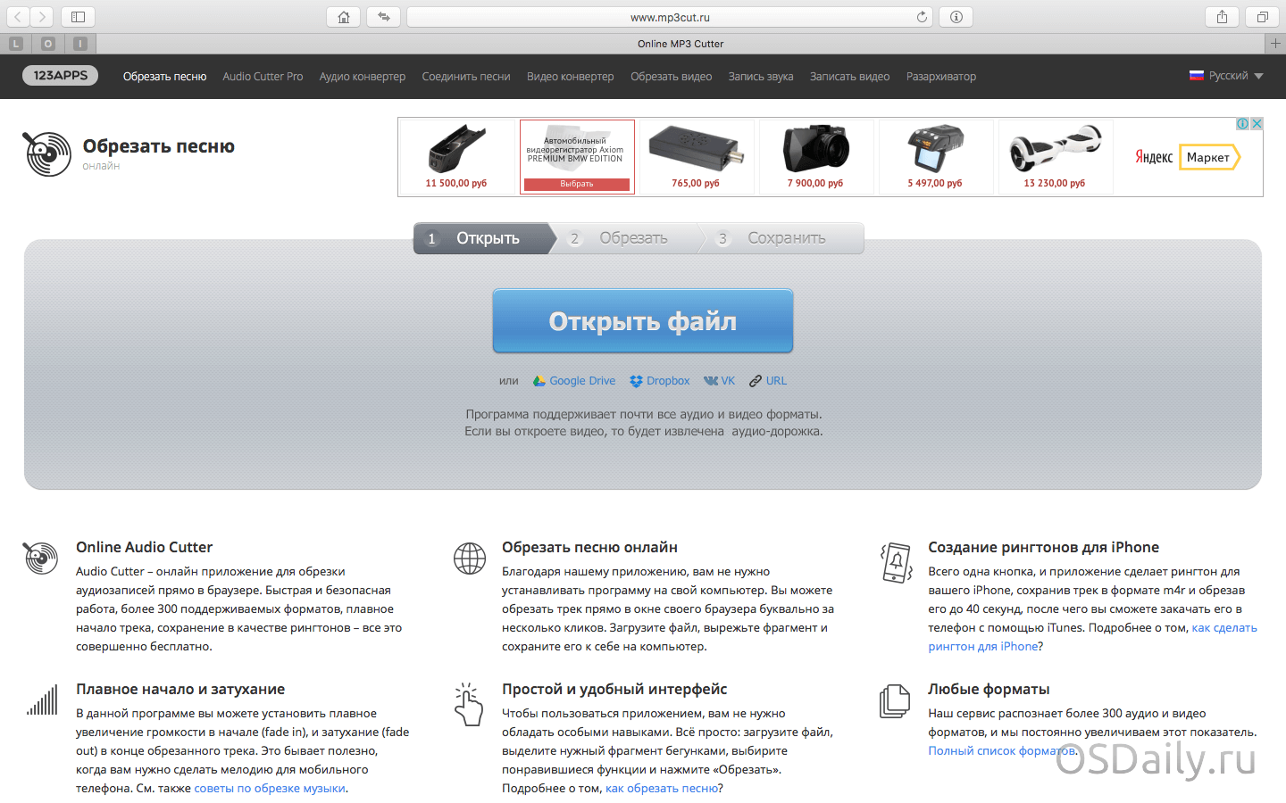 Как обрезать музыку с помощью редактора на веб-сайте: