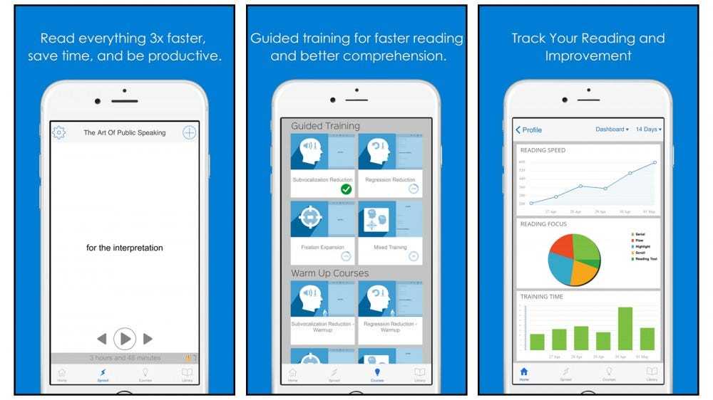 Хотя Spreeder (Бесплатно) является мощным и впечатляющим инструментом скорочтения сам по себе, его встроенная функция обучения, где он действительно сияет. Spreeder помогает вам выявлять плохие привычки к быстрому чтению, такие как регрессия и субвокализация, и учит, как их устранить, одновременно помогая вам повысить скорость чтения и понимание. Он предлагает обучающие курсы и курсы разогрева, которые помогут вам тренировать глаза и быстрее читать, не прибегая к вредным привычкам.