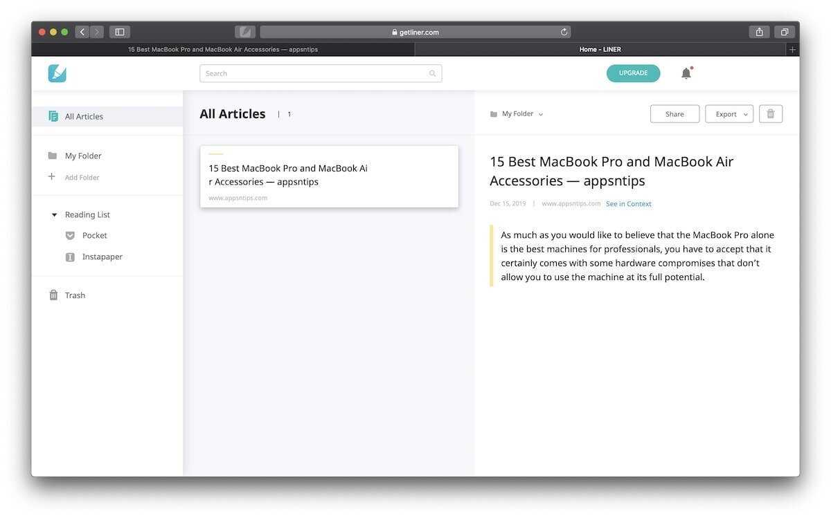 Liner also saves all the highlights in your account so you can get back to articles when you want. I have found this handy when doing research for an article or for my work. Not only I collect important articles but all the good parts are already highlighted so I don’t have to re-read the entire article. The extension is free to use with limitations. If you want more features and no limits you can upgrade to the paid plan that costs $7.99/month. That said, the free plan will suffice the needs of most users.