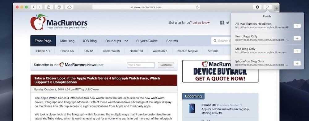 This is one of the handiest Safari extensions for RSS readers. This extension allows you to discover RSS feeds of websites when you visit them. From there, you can click on the + button to add that RSS feed to a reader of your choice. It identifies all the feeds a website is offering and lets you select the feed that you want to save. It also detects the RSS reader installed on your Mac and saves the feed in the same. If you have multiple RSS-readers installed, you can select a default option and change it when you want to switch Readers. This is a handy tool to find RSS feeds for websites.