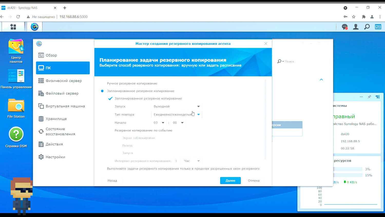 На следующем шаге можно включить возможность автоматического копирования при подключении накопителя, то есть вам не нужно будет использовать интерфейс DSM, достаточно только подключить накопитель через USB порт. Также можно задать расписание.