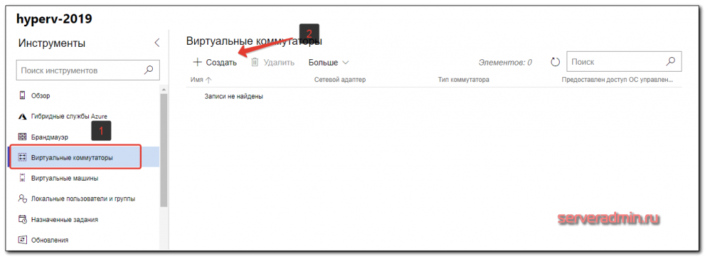 Для этого идем в раздел Виртуальные коммутаторы и жмем на кнопку Создать.