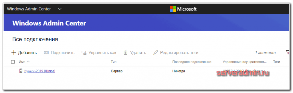 Чтобы страница открылась, введите учетные данные администратора hyper-v сервера. Выбираем единственный сервер, вводим еще раз данные администратора и подключаемся к панели управления сервером. Дальше, думаю, уже сами разберетесь. Не буду подробно останавливаться на описании функционала Windows Admin Center.