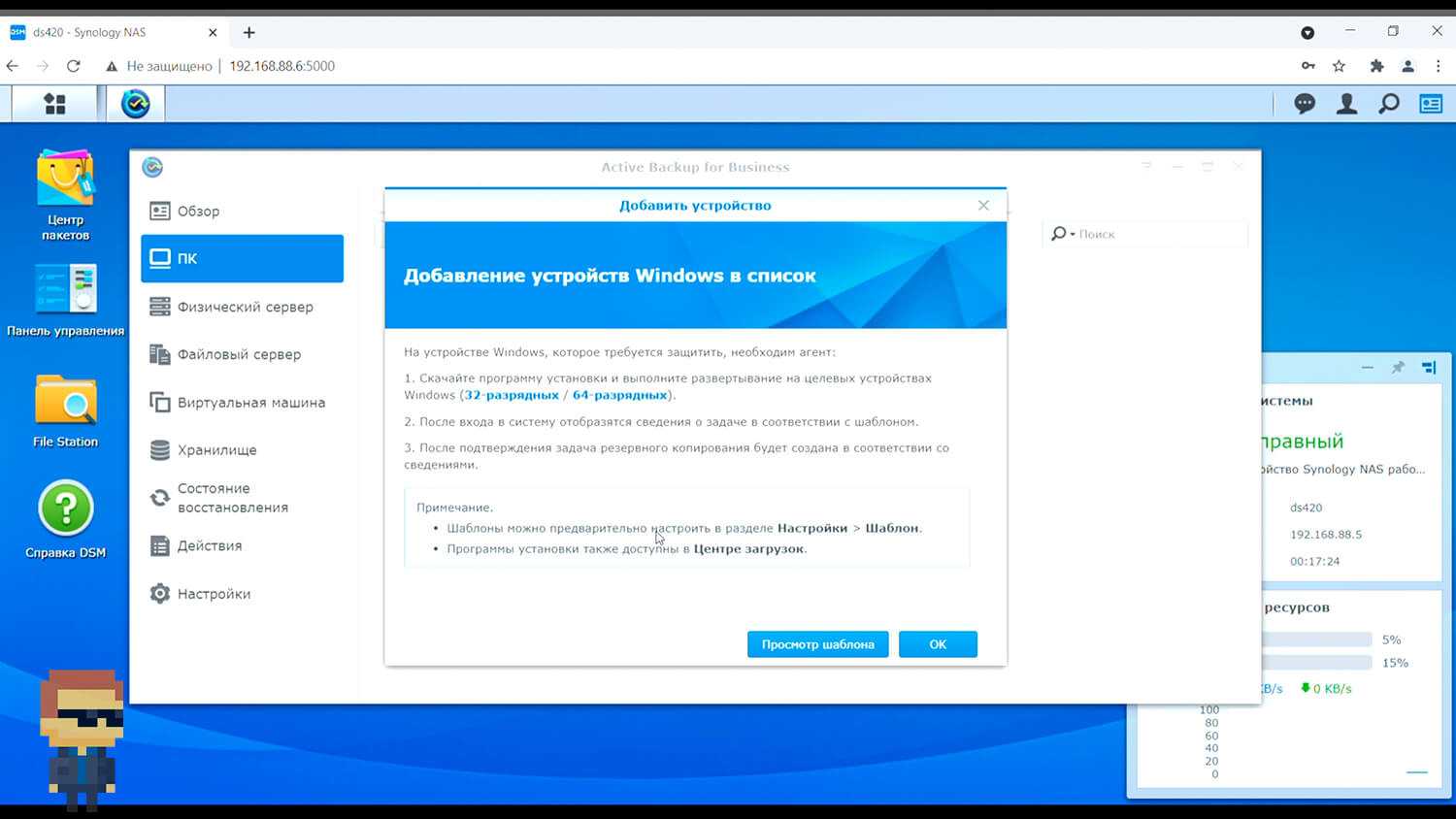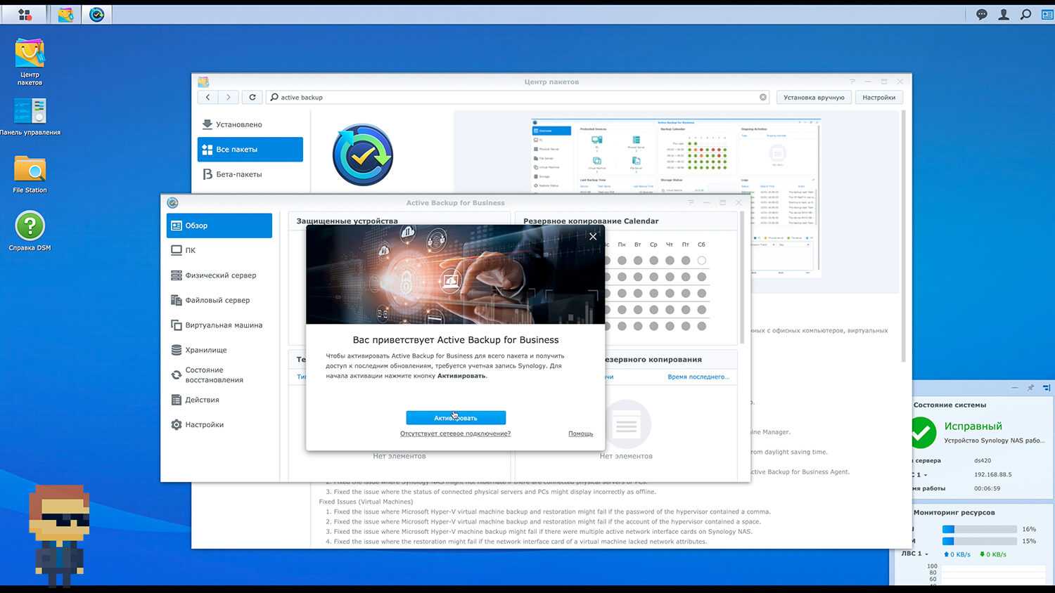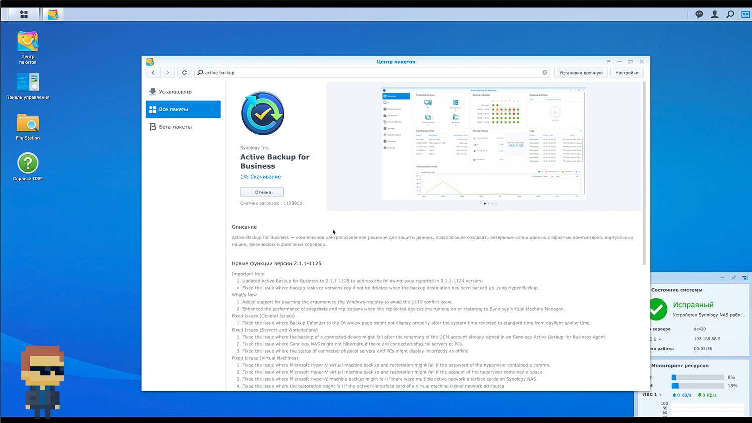 Для этого в «Центре пакетов» NAS ищем утилиту «Active Backup for Business» и устанавливаем ее.