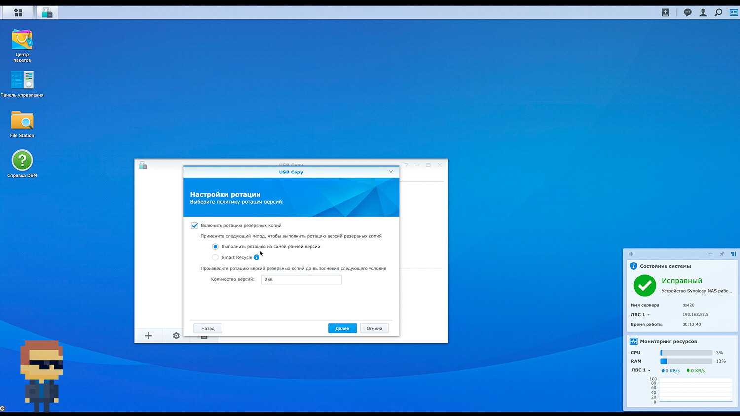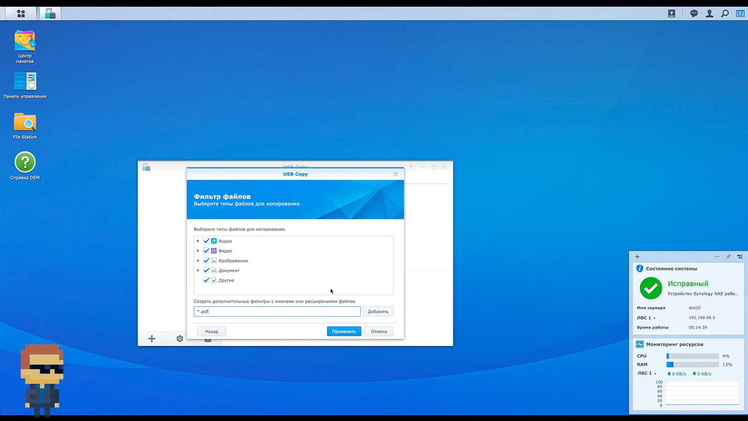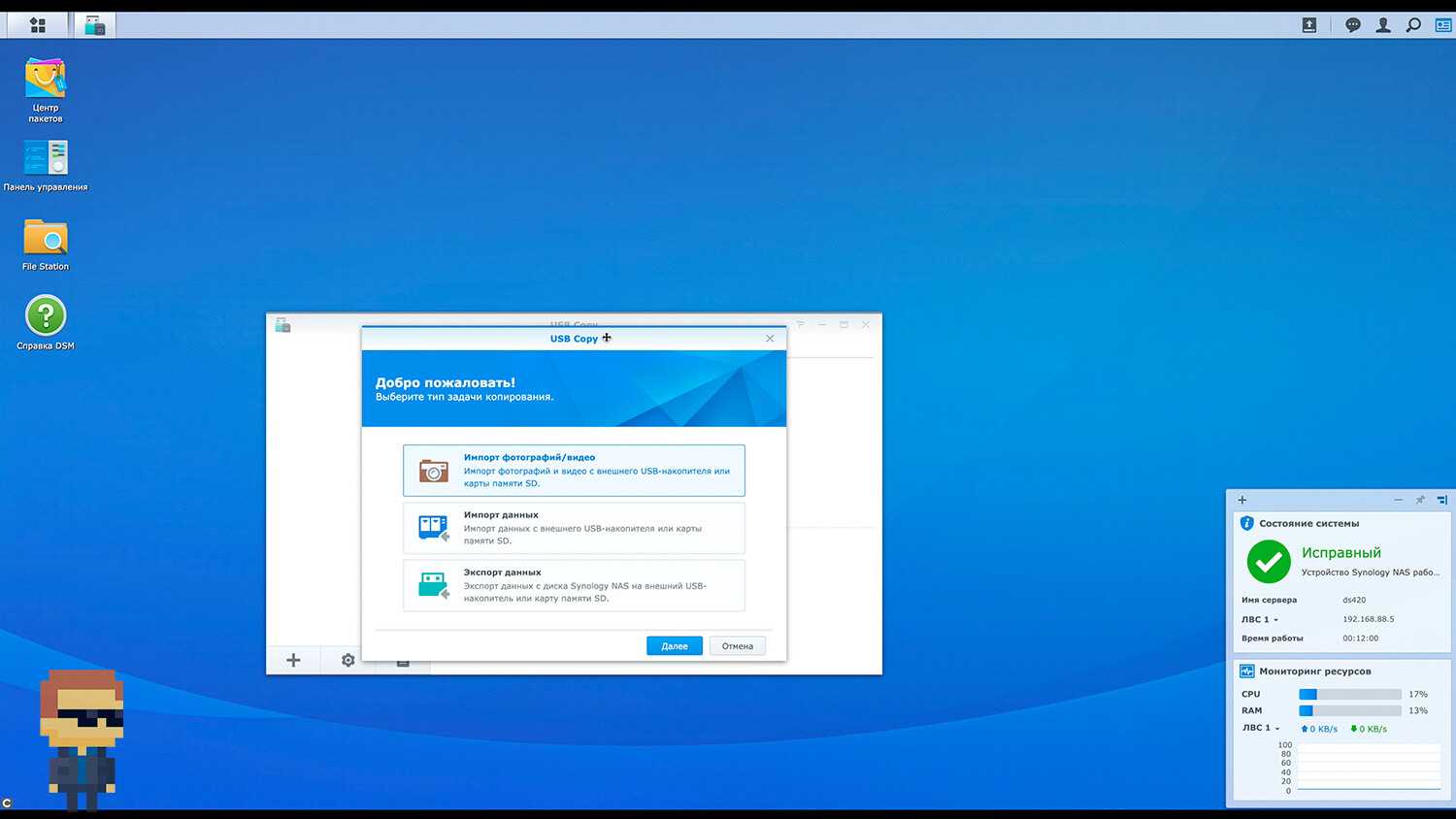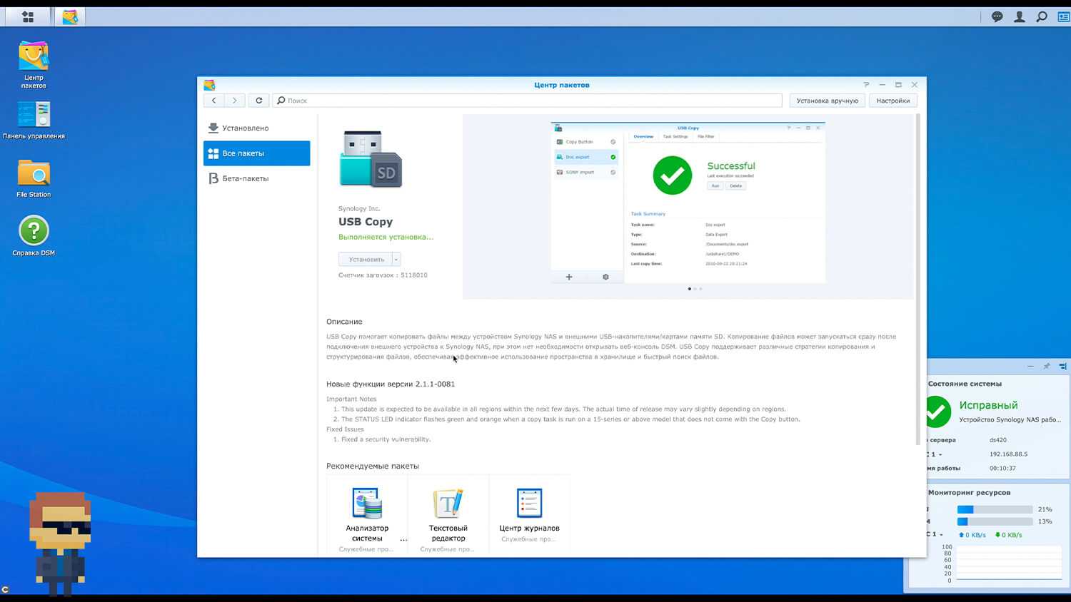 Утилита USB Copy для NAS Synology — универсальный инструмент бэкапа, доступный пользователям Windows PC. Если в основном меню программы нет, нужно установить из Центра пакетов.