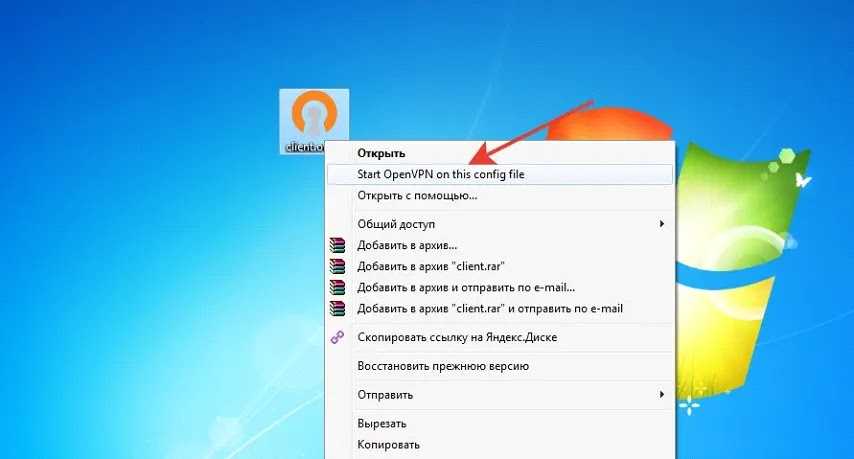 - Нажать правой кнопкой мыши на ранее созданном файле блокнота и выбрать пункт Start OpenVPN.
