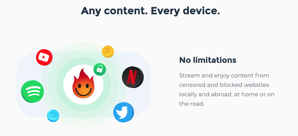 Hola VPN с испанским сервером, позволяет транслировать с совместимых и популярных платформ, таких как Amazon, HBO, Hulu, YouTube и BBC, но не может разблокировать Netflix, как большинство VPN.