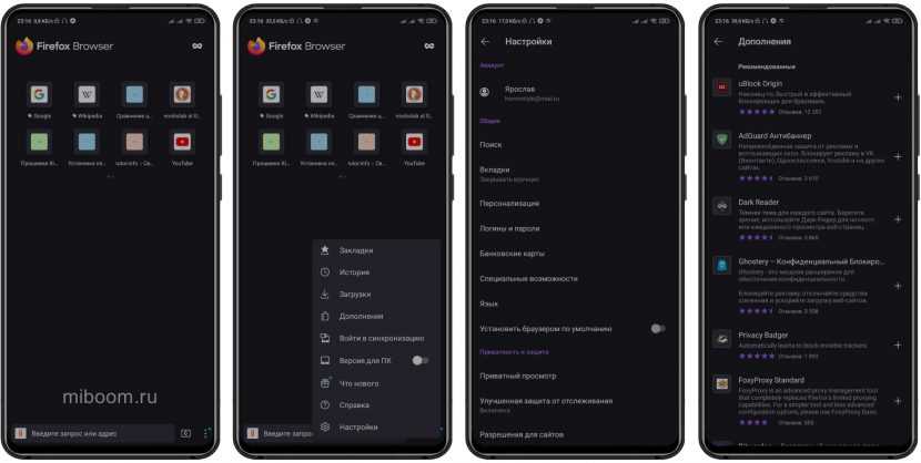 Firefox способен автоматически блокировать разный рекламный контент, но лучшие результаты достигаются при дополнительном использовании расширения uBlock Origin. Меню достаточно простое для понимания, все настройки находятся под рукой. Реализована комфортная работа с вкладками, а также есть возможность быстрой синхронизации с версией для ПК.