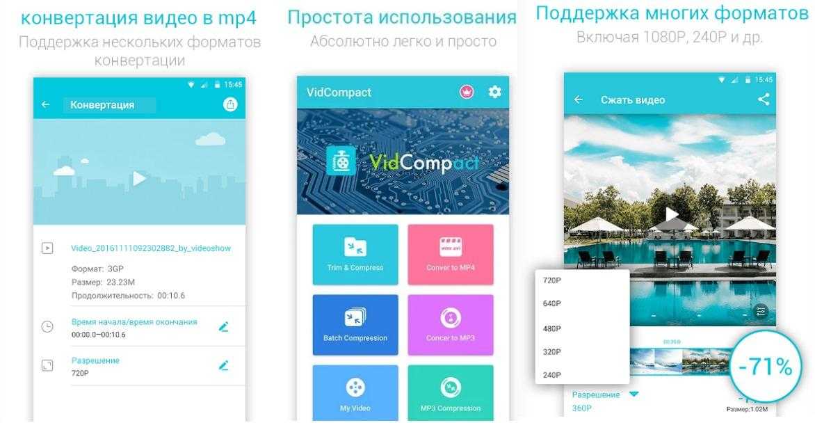 Соответственно, если перекинуть сразу несколько роликов, они забьют полностью память телефона. В этом случае целесообразно преобразовать их и понизить качество, например, с 4К до 720Р. Благодаря этому в разы снизится их вес. А на маленьком экране смартфона вы разницы в качестве не увидите из-за ограниченного числа пикселей, размещённых на небольшой площади дисплея.