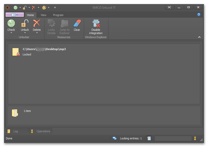Как и большинство подобных программ, включая указанные в нашем списке, EMCO UnLock интегрируется в «Проводник», но в этом плане выглядит выгоднее многих своих конкурентов, так как позволяет через контекстное меню разблокировать и удалять объекты, не используя основной графический интерфейс. Сам GUI можно настраивать – подключать дополнительные области и менять графический вид. Здесь все на английском языке, но есть и хорошие новости – ленточный стиль офисных приложений Microsoft многим покажется привычным и удобным.
