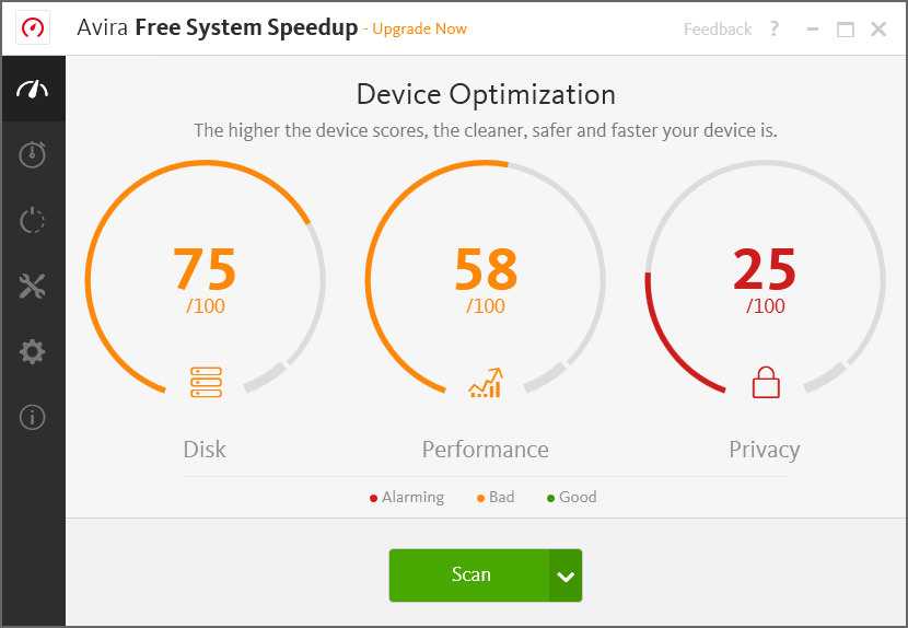 Как ваш компьютер оценивает дисковое пространство, скорость и цифровую конфиденциальность? Узнайте и оптимизируйте свою работу по всем 3 категориям одним щелчком мыши. Free System Speedup анализирует скорость запуска, показывает ее эволюцию с течением времени и ускоряет работу одним щелчком мыши. Наша премиум-версия обеспечивает дополнительный прирост скорости.