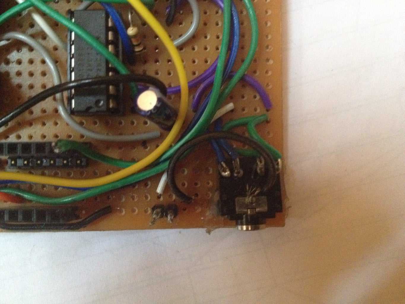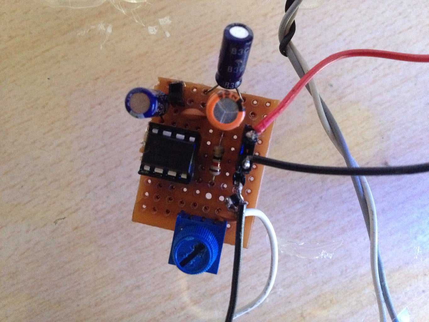 The only electrolytic capacitor values I had at hand were in multiples of 10 (10uF,100uF,1000uF)…therefore worked around values given in the schematic.For example I used 2 X 100uF capacitors in parallel intead of 220uF and instead of 0.05uF I used a 0.1uF ceramic capacitor.The only downside to this was that the speaker produced a faint hum when there wa no signal…no biggie.