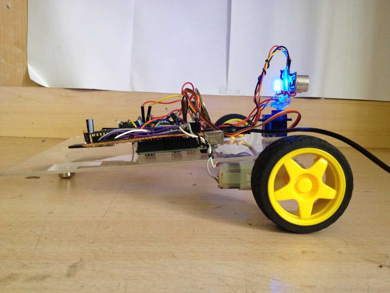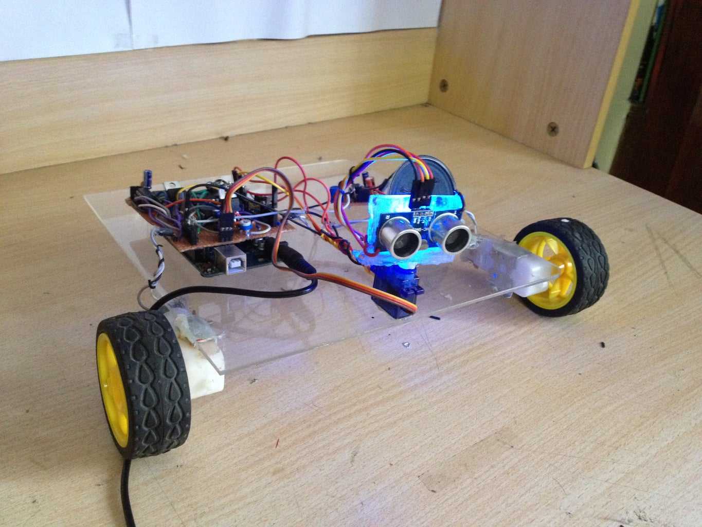 - Avoids obstacles using the HCSR04 ultrasonic sensor.