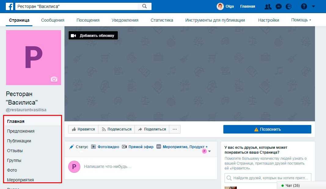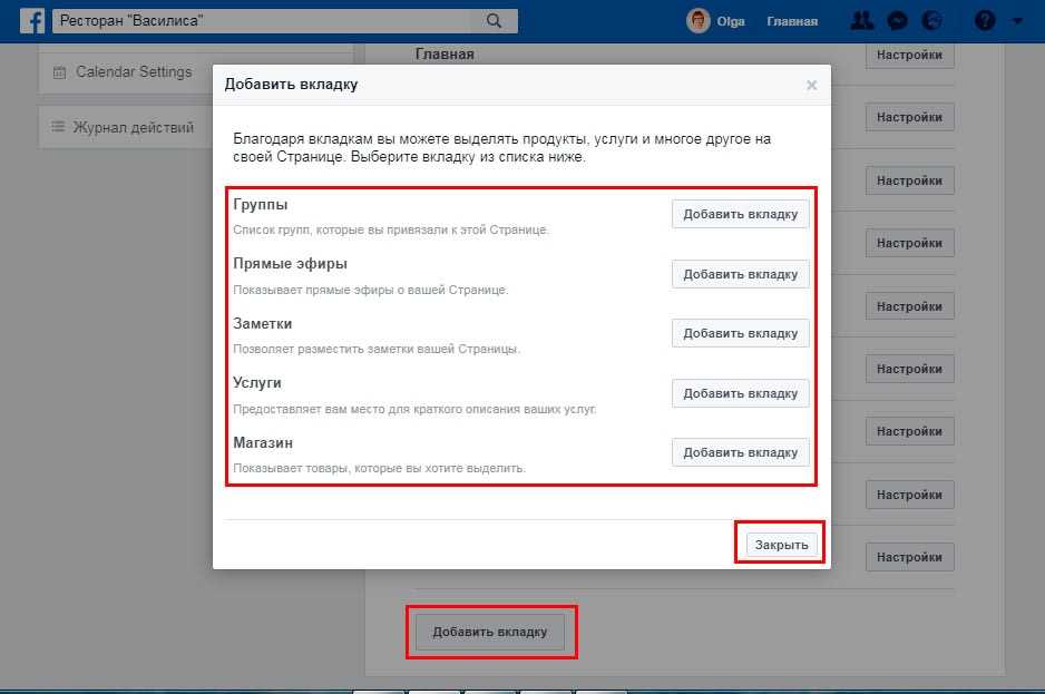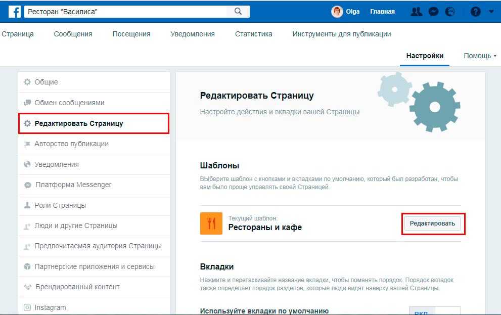 Какими вкладками и разделами страницы можно управлять — справка Фейсбука