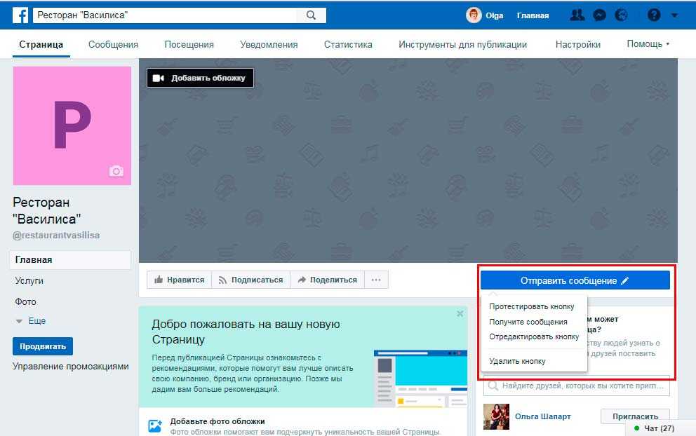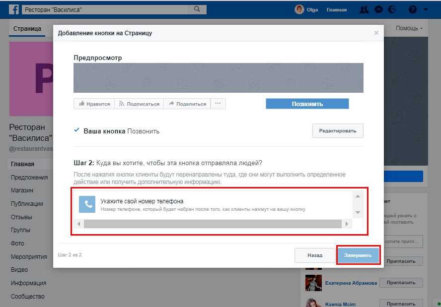 Теперь нужно указать, куда ведет кнопка. Например, если целевое действие — «Позвонить», то добавьте номер телефона, если «Сделать покупку» — то ссылку на магазин. После настройки проверьте, как работает кнопка. Для этого наведите на неё курсор и в выпадающем списке выберите «Протестировать кнопку»
