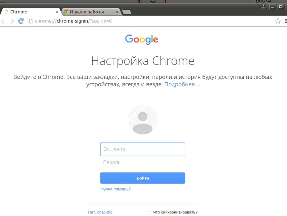 1. Залогиньтесь в системе Google (зайдите в аккаунт, который необходимо очистить от данных Гугле Хрома).
