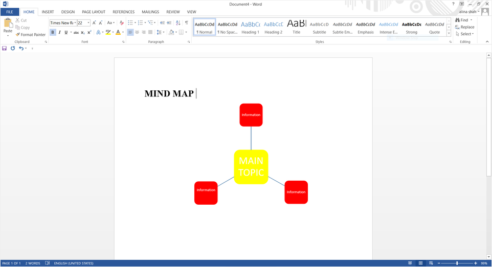 Before you begin laying out your mind map, you need to have the main topic in mind. Identify the key information about your topic and how they relate to it. Now, to design the mind map Microsoft word use any one of the following options: