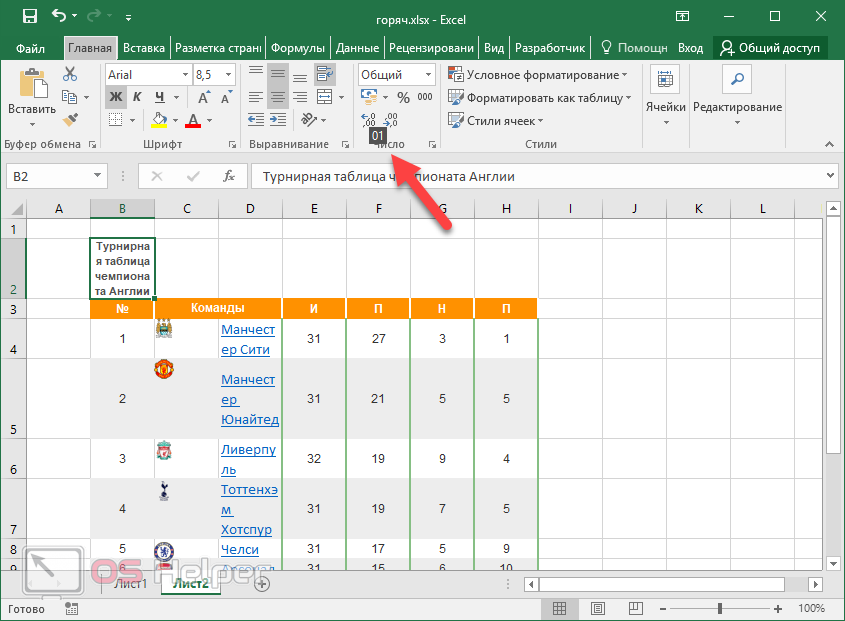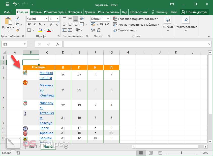 - Стрелка вверх / вниз: перемещение одной ячейки вверх или вниз