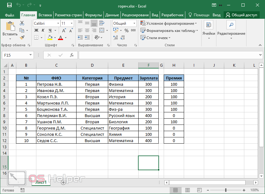 - Введите формулу на чистый лист (чтобы можно было проверить как работает данный пример).