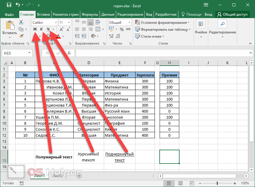 - Стандартные сочетания клавиш, например Ctrl + I для курсива, которые нельзя изменить в Excel.