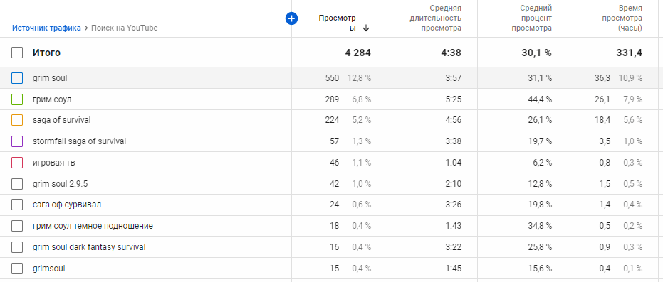 Если вы увидели там ключи, под которые уже оптимизируете видео — это хороший знак, вы действуете правильно. В статистике могут попадаться ключи, которые вы не использовали в оптимизации. Тем не менее, платформа показывала ваш ролик по этим запросам. В таком случае рекомендуют включить эти ключи в работу, чтобы добиться по ним более высоких позиций.