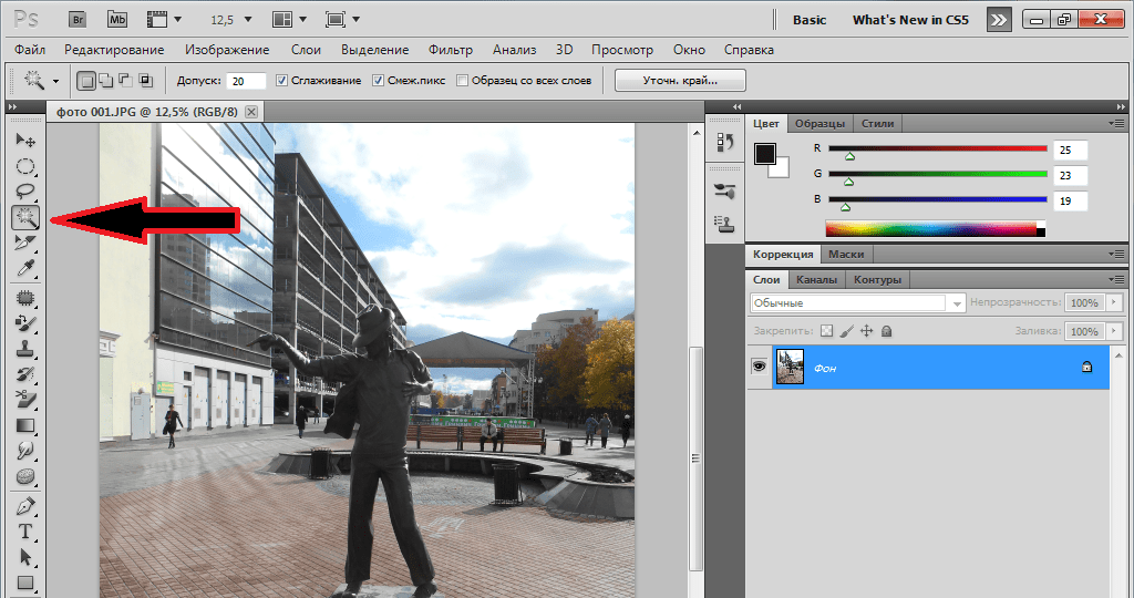2. На боковой панели инструментов найдите инструмент выделения «Волшебная палочка