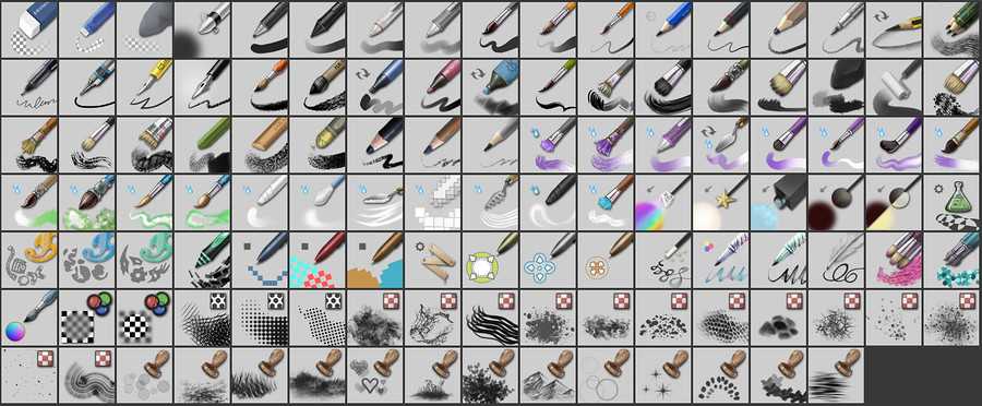 GIMP has excellent brush support, but the brushes that are pre-installed leave a lot to be desired. While you can expand them yourself (check out my list of the best GIMP brushes) and create new ones, Krita has over 100 high-quality – and actually useful – brushes pre-installed.