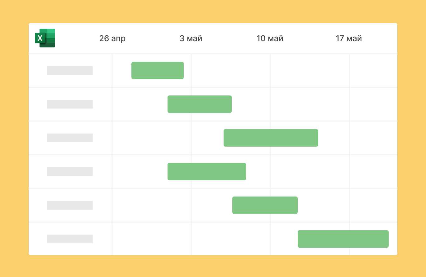 Кроме привычных возможностей, Excel позволяет решать и не самые тривиальные рабочие задачи. Например, с помощью этого инструмента начинающие проектные менеджеры могут построить диаграмму Ганта для визуализации рабочего процесса.