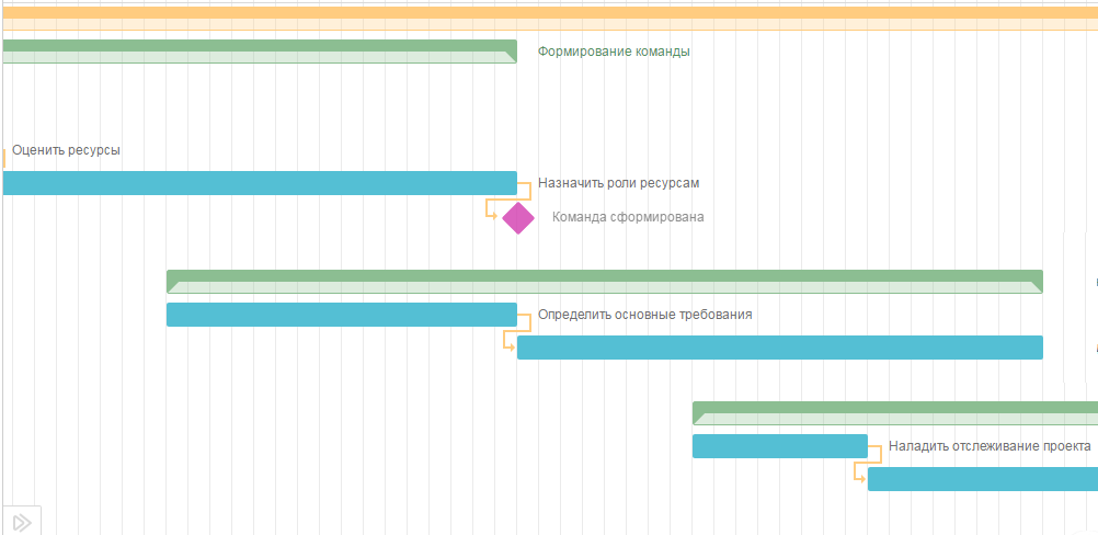 По сравнению с простыми блок-схемами, я считаю, что одной из сильных сторон диаграмм Ганта является то, что они показывают процессы параллельно. Во многих случаях задачи зависят от выполнения других задач. Например, отделу продаж может потребоваться изменить дизайн сайта, прежде чем они смогут начать продвигать новые продукты. Диаграммы Ганта сильно помогают каждой команде увидеть, где они вступают в процесс.