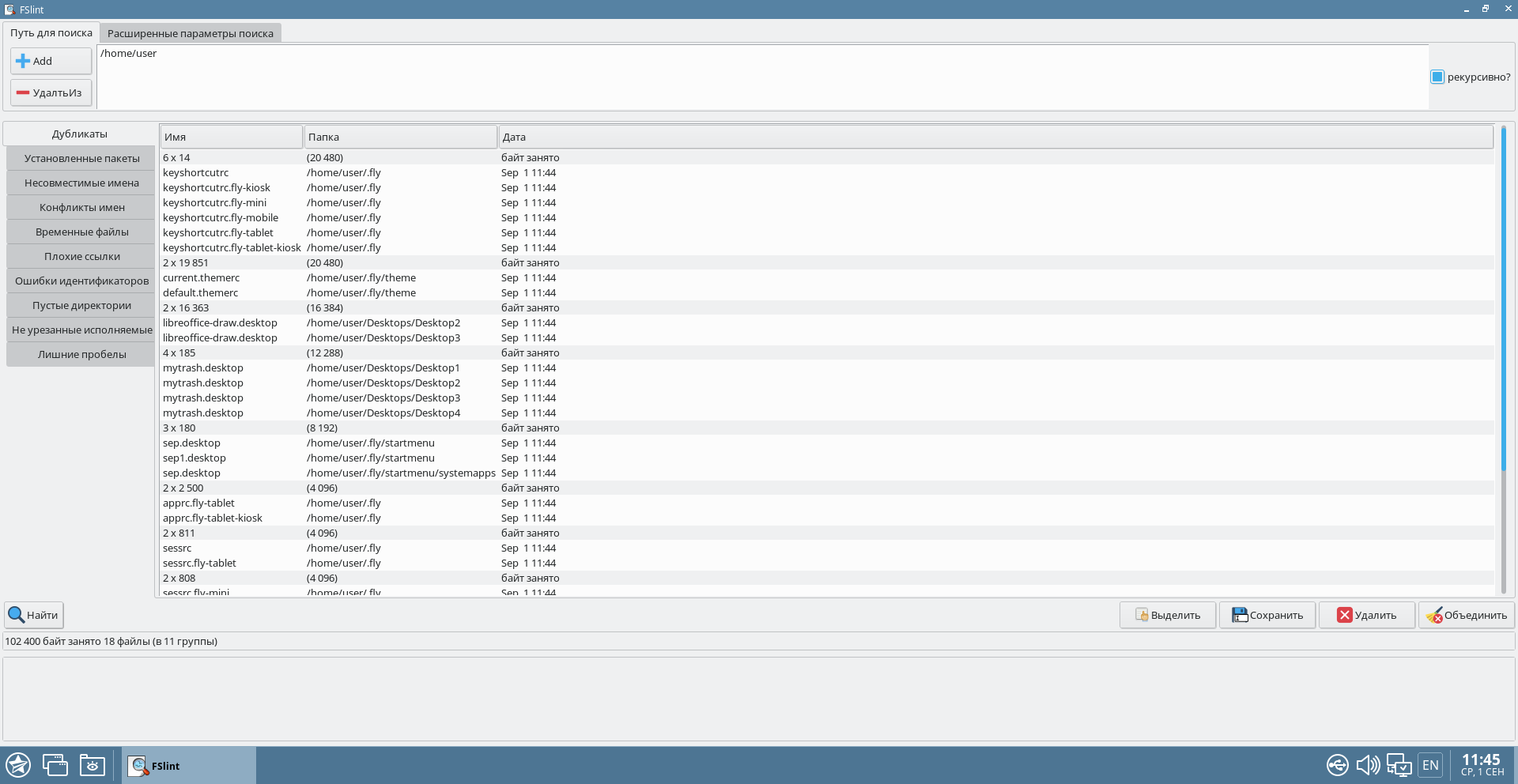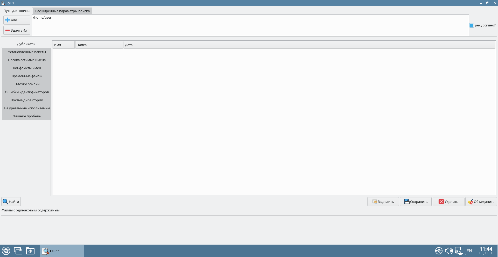 После установки инструмент доступен в графическом меню «Пуск» — «Системные» — «FSlint Janitor».