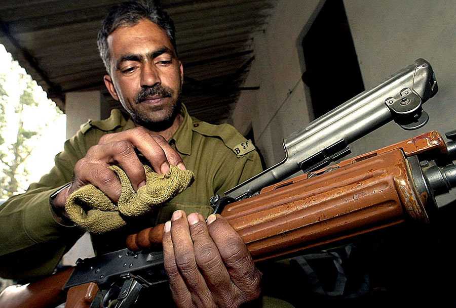 - Индийский пограничник с автоматической винтовкой INSAS